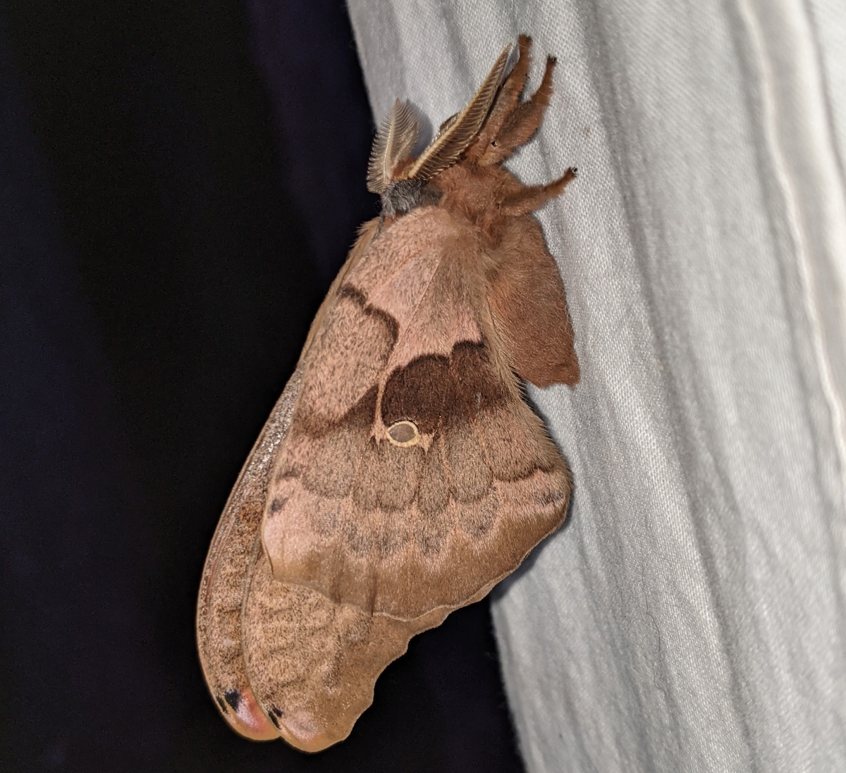 moth at that: Antheraea polyphemus, the Polyphemus moth. I’ve seen this moth all over the province and it never gets old. One morning this summer I pulled 5 out of my moth net here on Bowen Island. Booyah.
