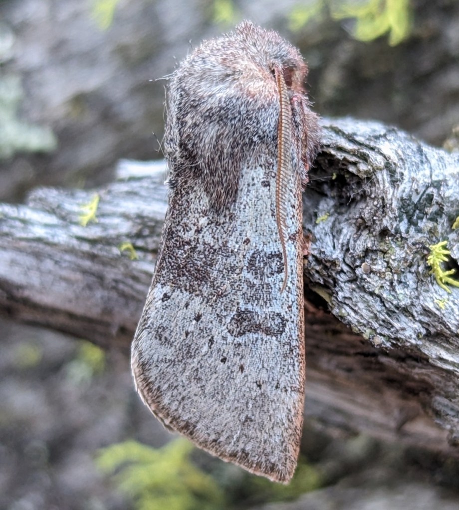 There was probably 10x the numbers of moths as before. I had the expected repeat views of Acerra normalis, Orthosia hibisci, Egira crucialis and curialis, but also a couple more Egira species: simplex and perlubens, two Pleromelloida: bonuscula and conserta (always handsome), four or five Xylena curvimacula (Dot-and-dash swordgrass moth), a Gluphisia severa, an alleged Acleris pulverosana (large, tough genus!), a picture-perfect Behrensia conchiformis and three more Orthosia species: O. revicta, O. pacifica (interesting location, that) and, drumroll…. Orthosia pulchella!