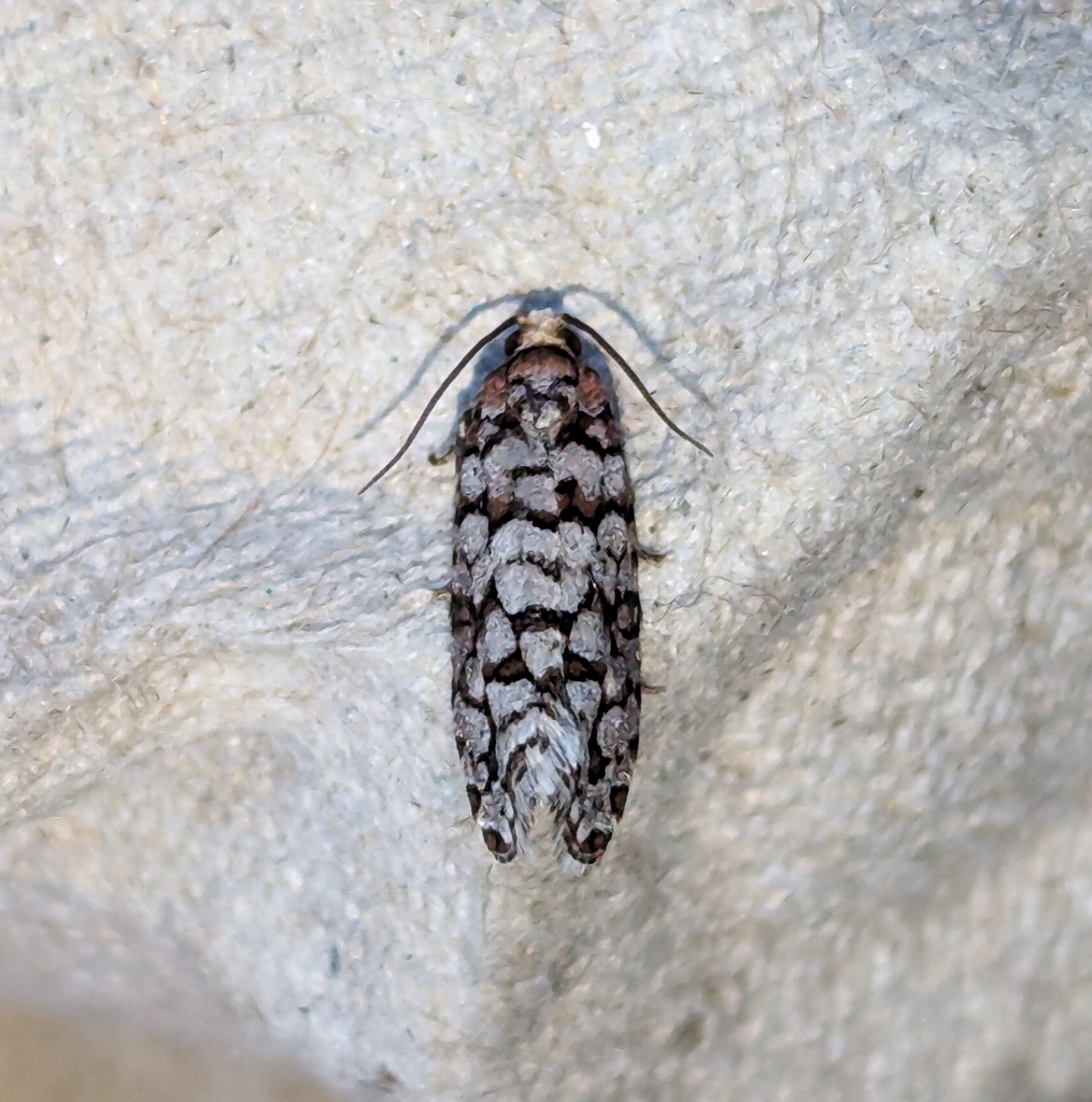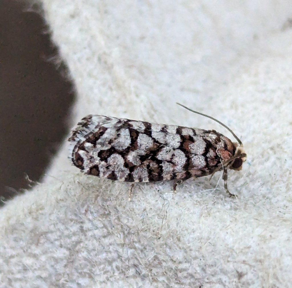 Great name. I was mis-IDing this as Barbara mappana, a similarly small, squat, blotch-patterned moth but Janice Arndt of Nelson suggested this species instead. What a beaut! I probably saw about 15 or 20 while I was there.