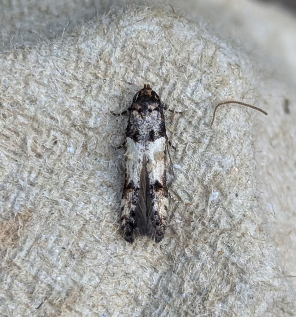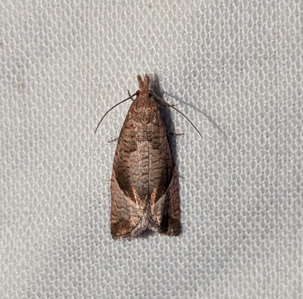 - The Pelochrista derelicta shown above was the highlight of the evening. Pelochrista are the oddest of genera; they’re all over the map. This one looks like a Tortrinae to me.