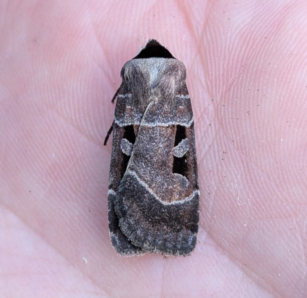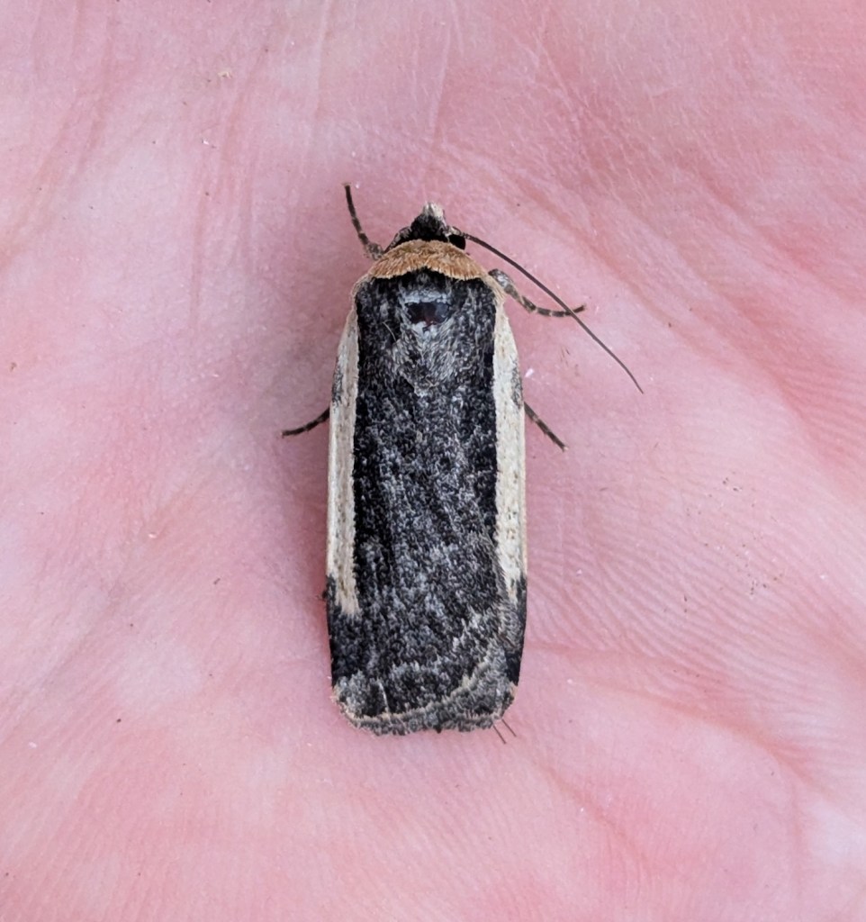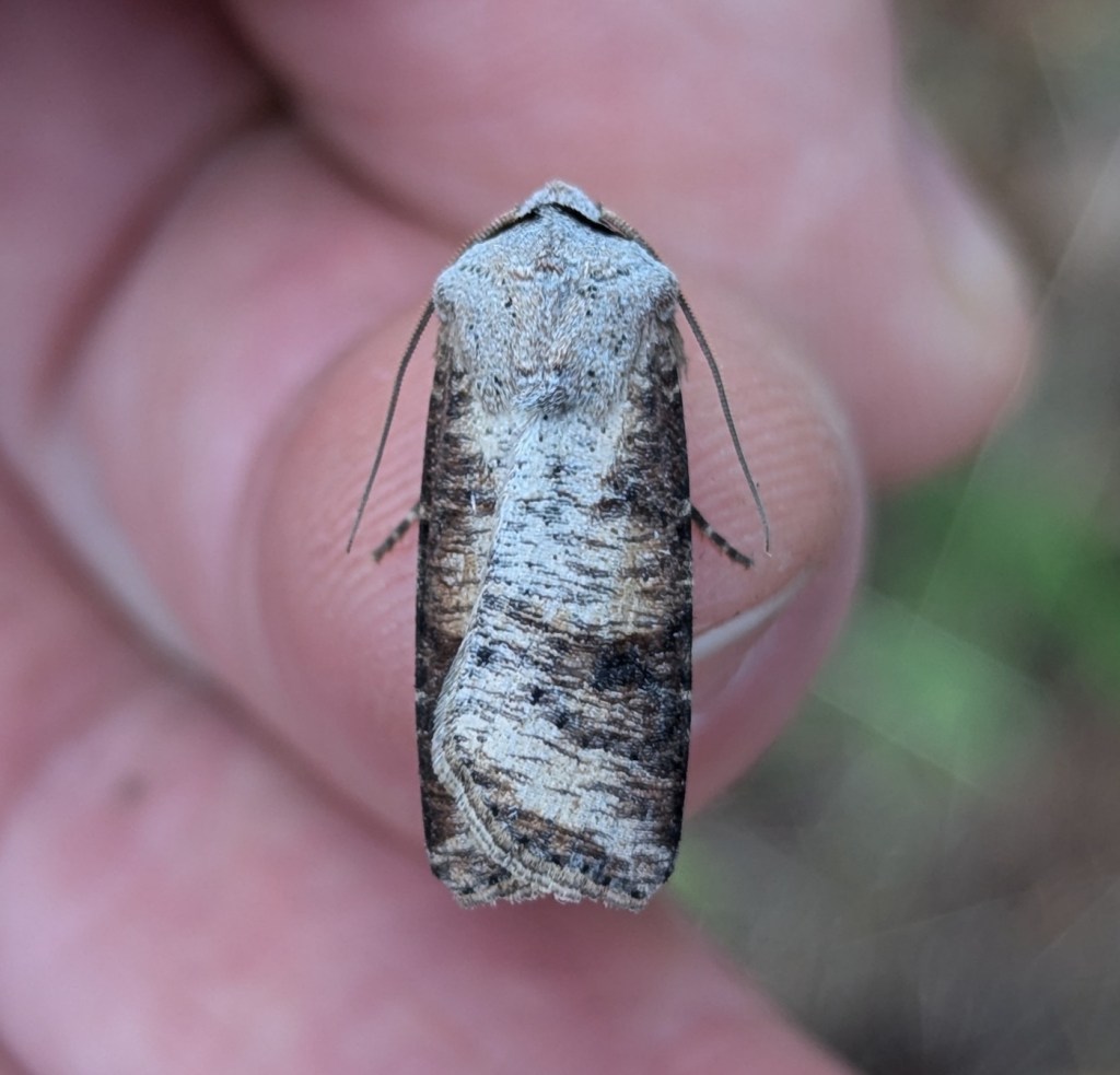 I was thrilled to finally see Abagrotis vittifrons, the Pale-edged dart. Very cool-looking moth. A pair of Macaria colata (not shown) caught me off guard – I mistook them for Macaria signaria and hadn’t paid them much attention at the time. I took a long time hunting around on bugguide for an ID of the Epinotia solandriana – shown above. I think it’s right, but take it with a pinch of salt. Seems like they come in dark and light modes.