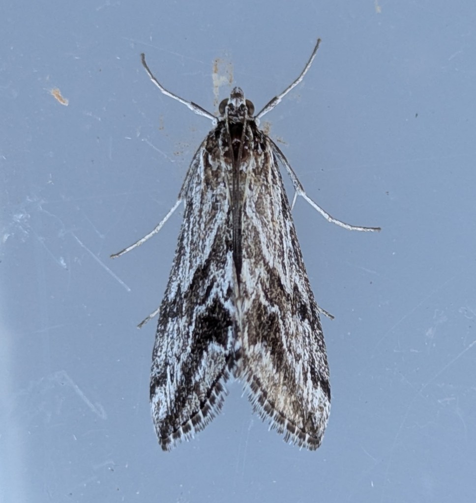 I do wish I could have gotten a better photo – taking shots against that netting material never works. This was one of those photographs you hope to get after detaching the net from the plastic frame and there’s a mass exodus of moths before you have time to photograph them. It’s always a little frustrating, but nothing much you can do about it. I saw this guy in the net before removing it, so quickly pinched it to discourage it flying off. On the ground I managed to snap these two shots. Better than nothing.